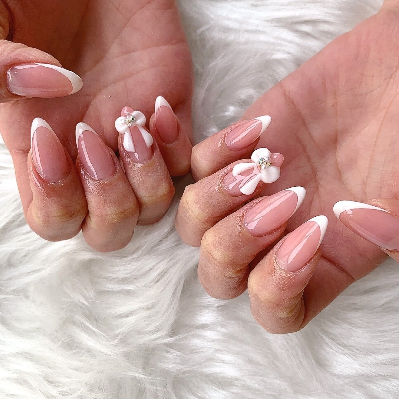 3dリボン フレンチネイル ブライダル 結婚式 ガーリー 可愛い シンプル 上品 肌なじみ